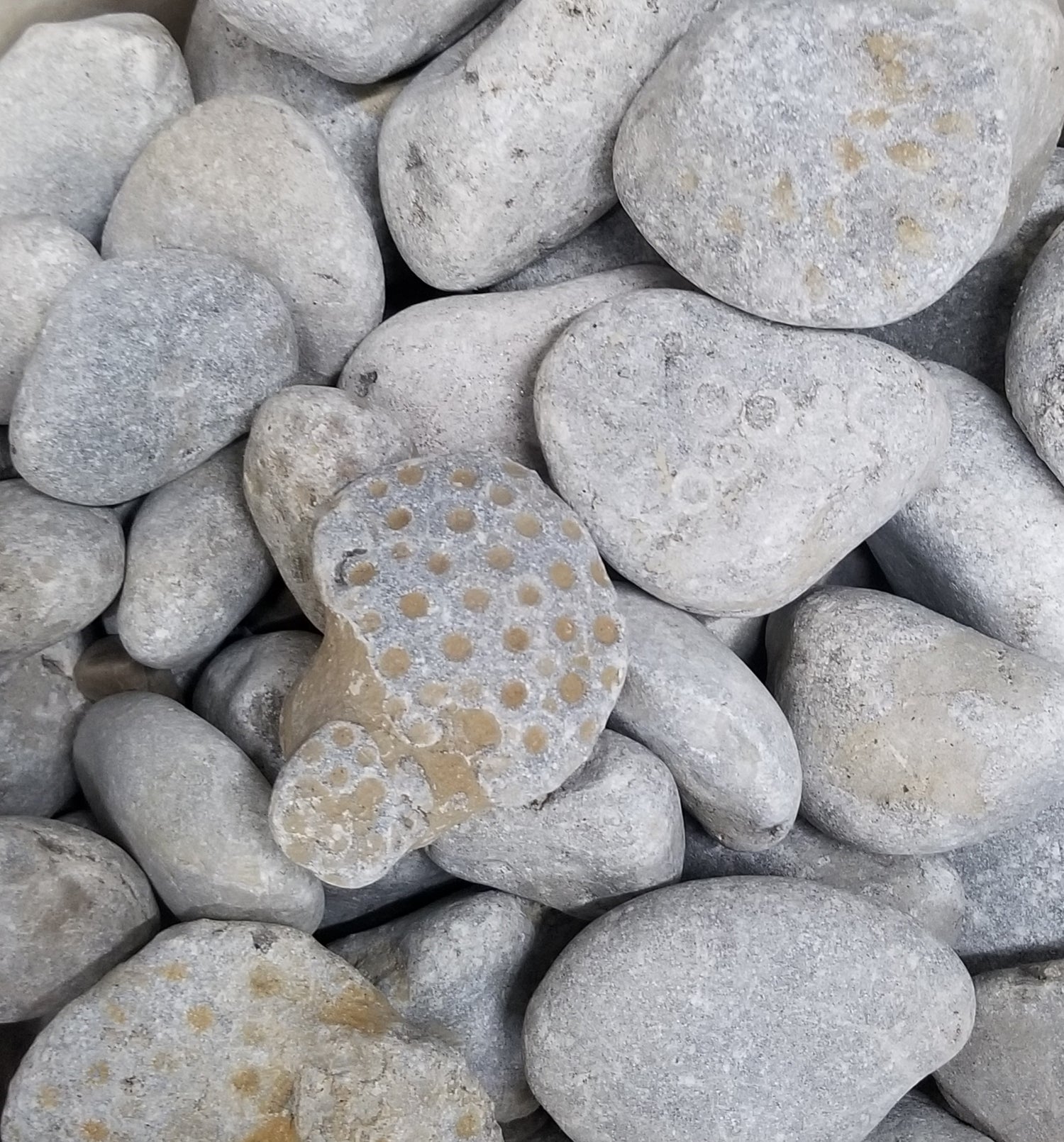 Unpolished Petoskey stones and Petoskey stone tiles