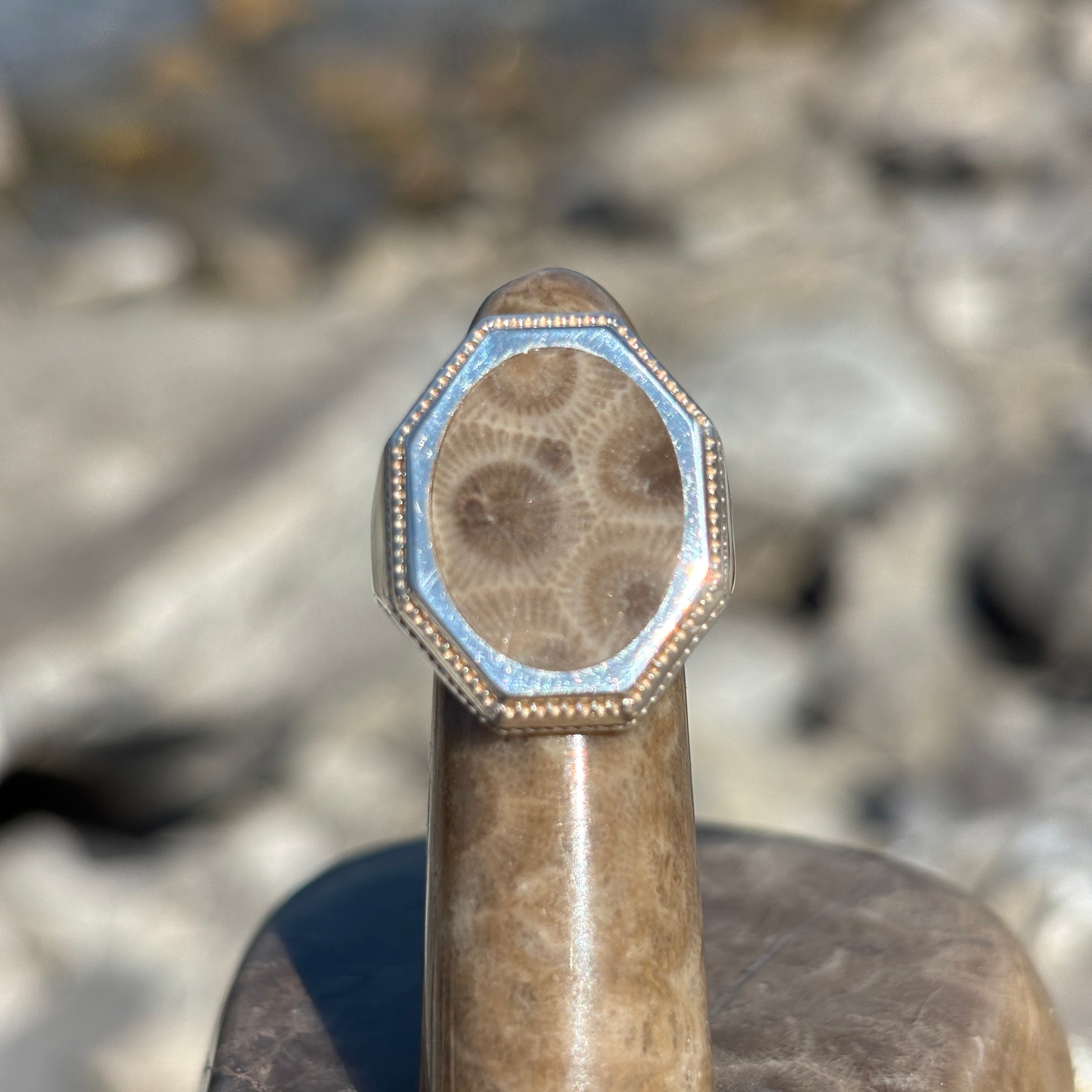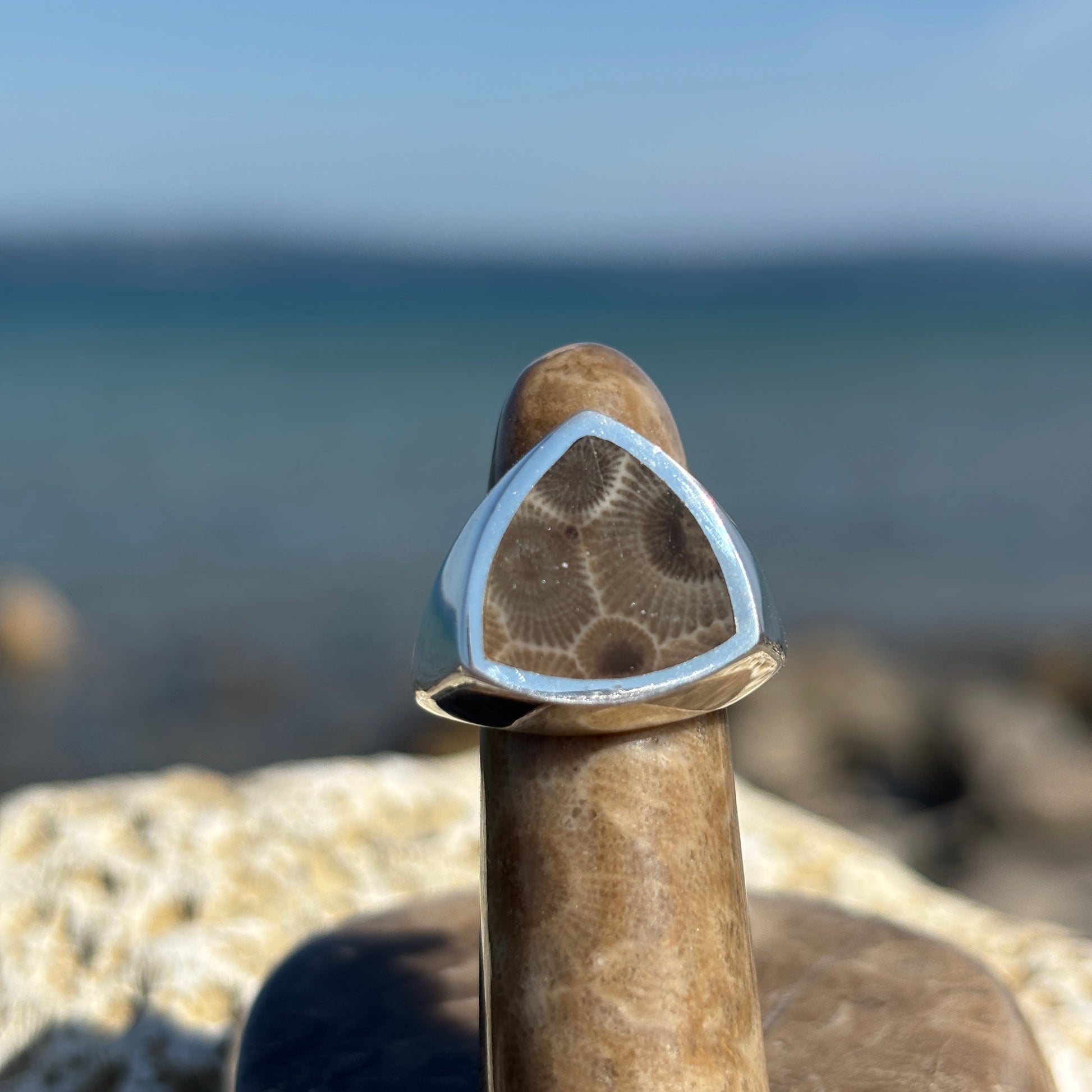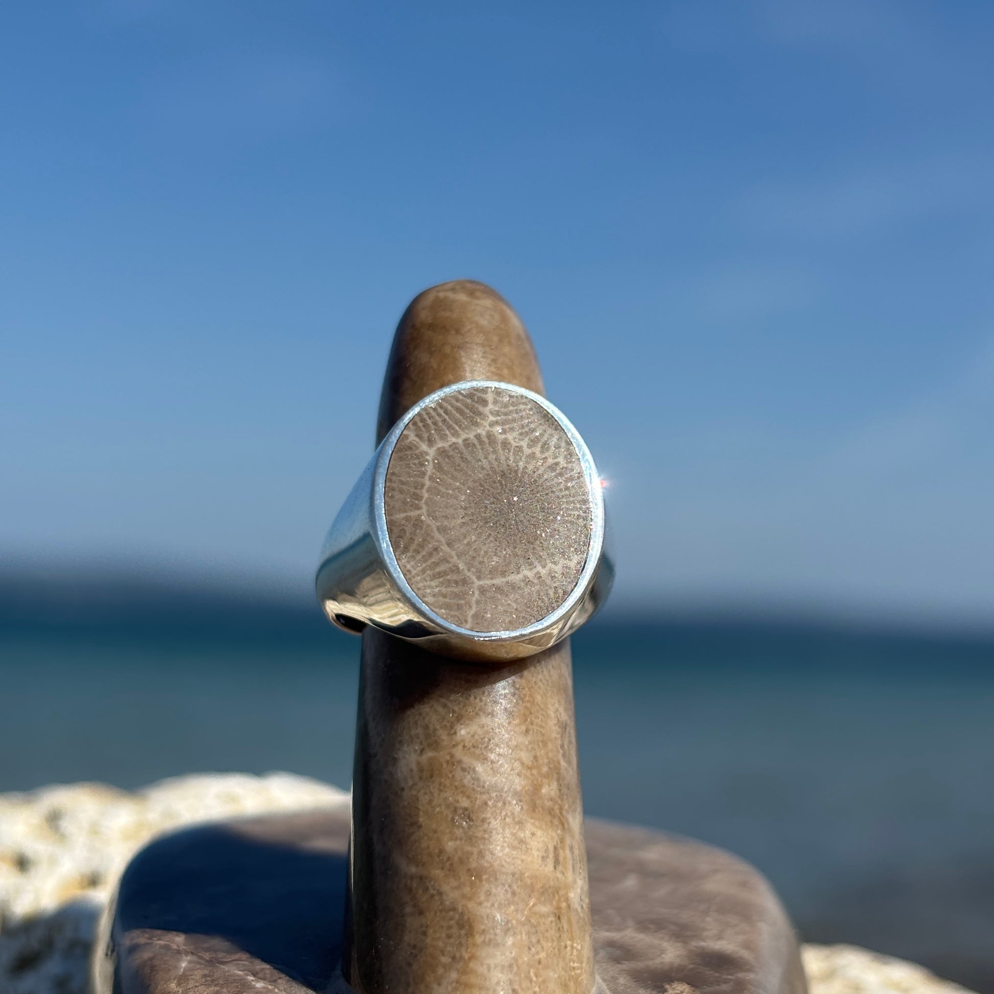 Elevate your style with our Men’s Petoskey Stone Sterling Silver Rings, expertly crafted to showcase the natural beauty of authentic Petoskey stones. Each ring blends timeless sterling silver with the unique, fossilized patterns of Michigan’s state stone, delivering a refined accessory that complements both casual and formal attire. This sophisticated piece not only honors nature’s artistry but also offers durable elegance designed to last. Perfect for the discerning man who appreciates distinctive craftsmanship and understated luxury.