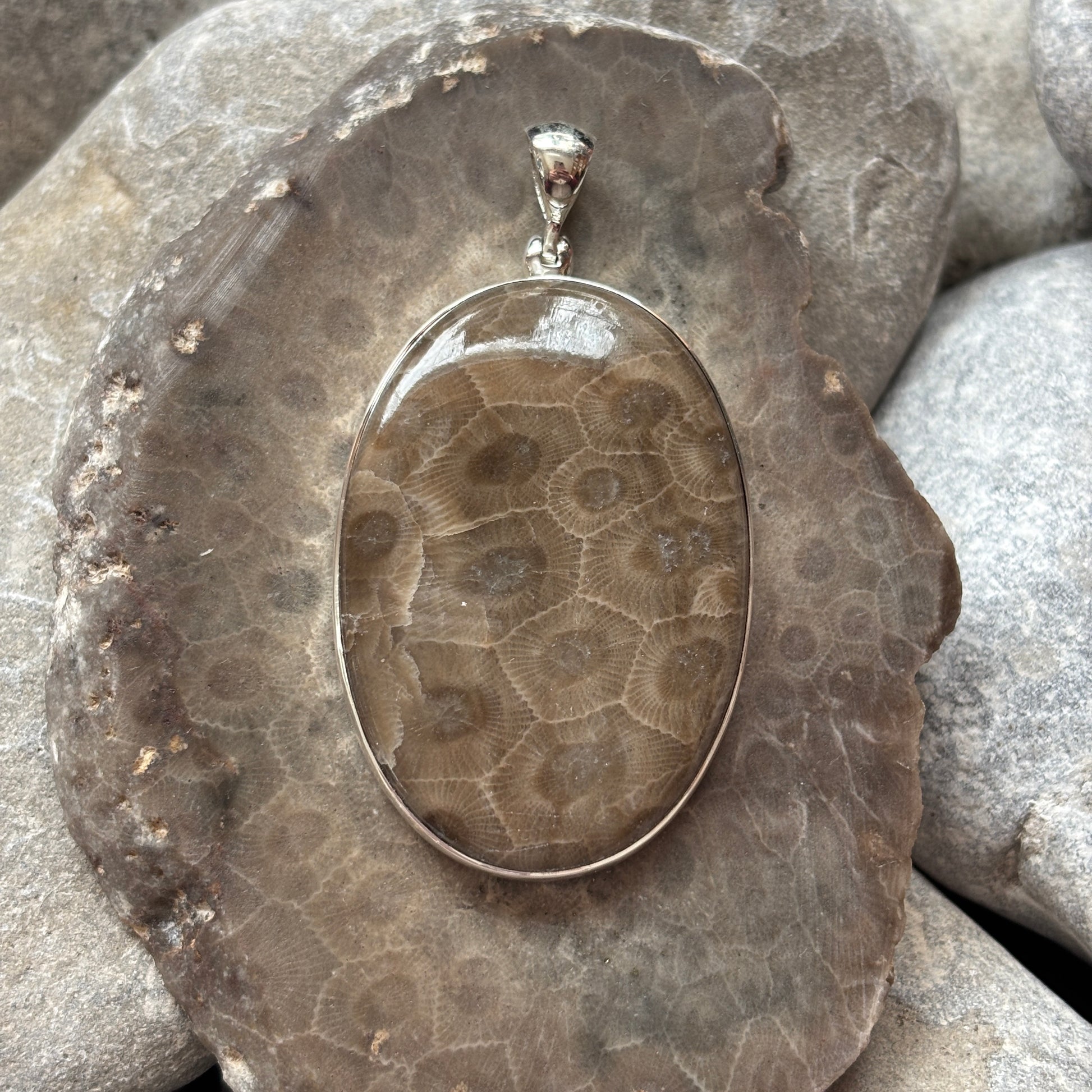 Elevate your style with Sterling Silver Petoskey Stone Pendants, featuring timeless fossil patterns unique to each stone. These elegant pendants serve as wearable art, blending natural history with refined craftsmanship. Perfect for those who appreciate sophisticated accessories that spark conversation and showcase nature’s enduring beauty.