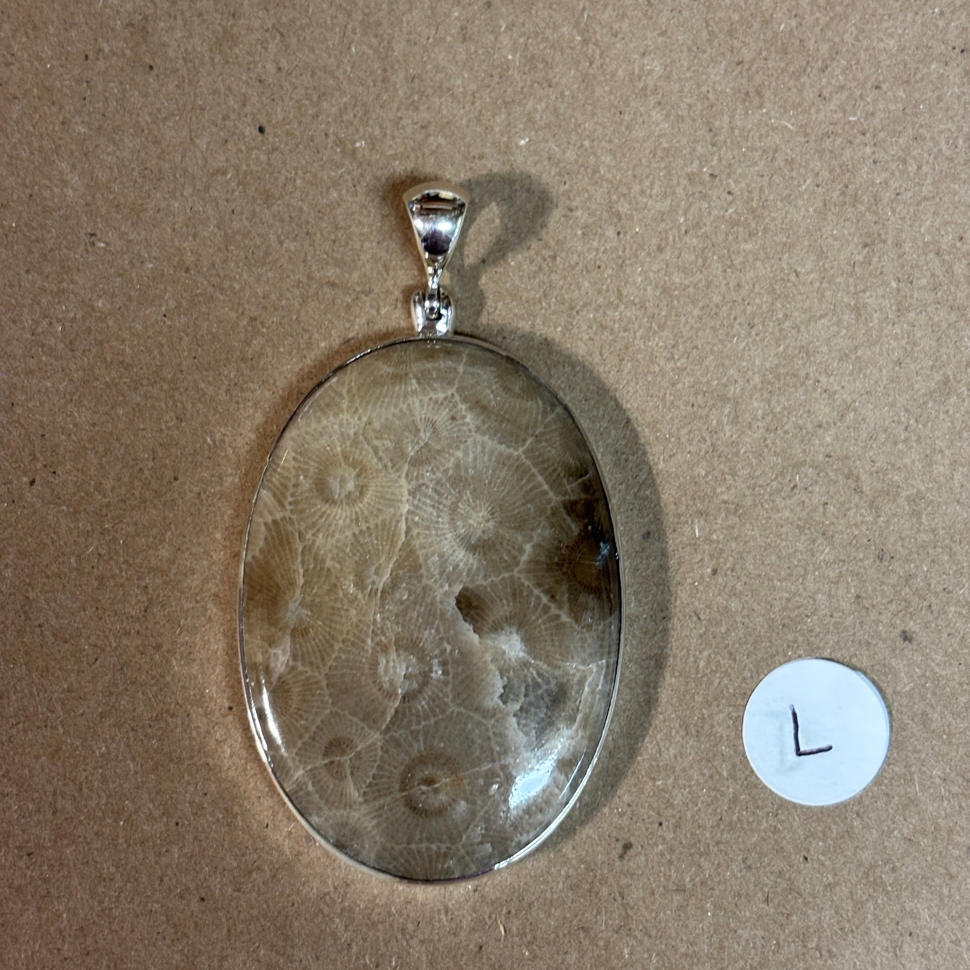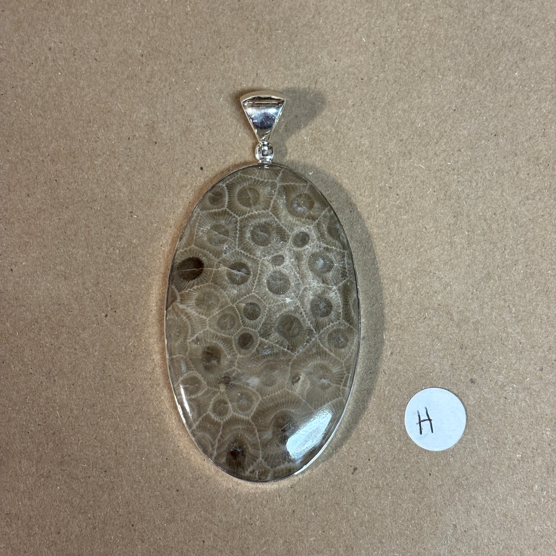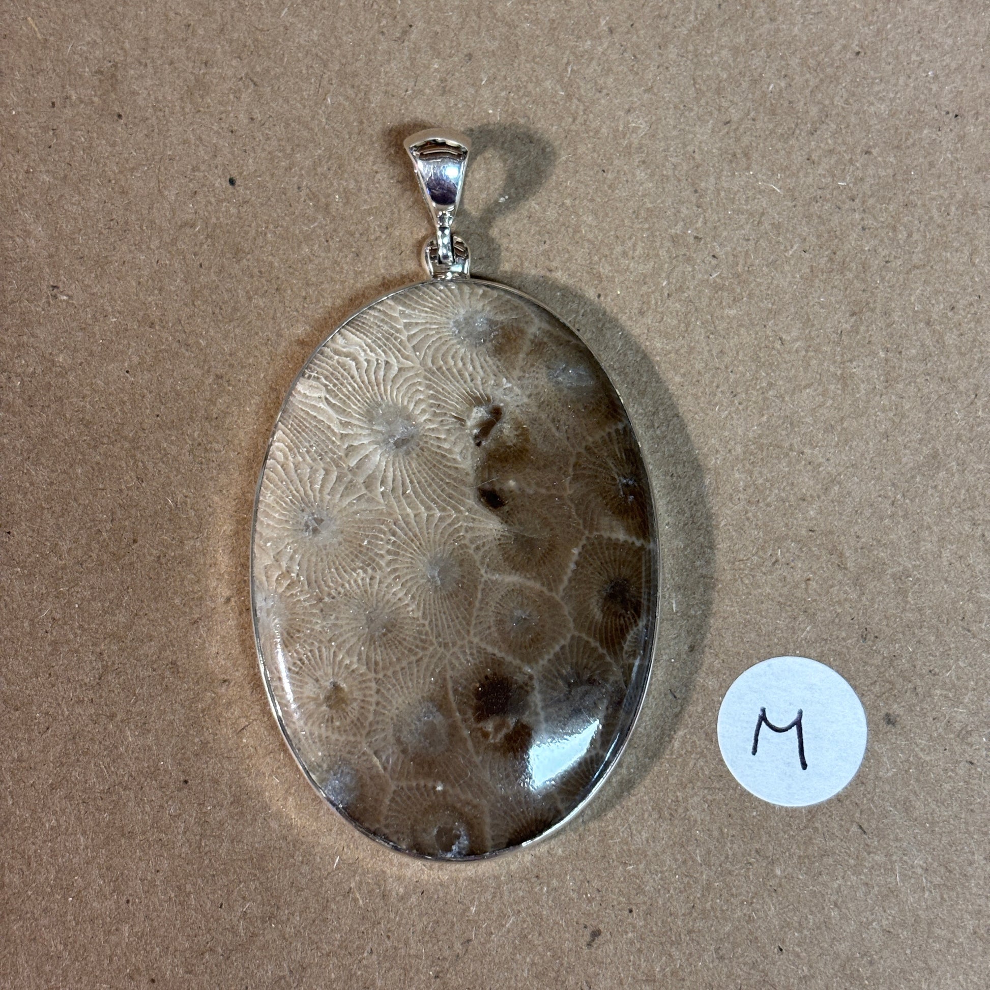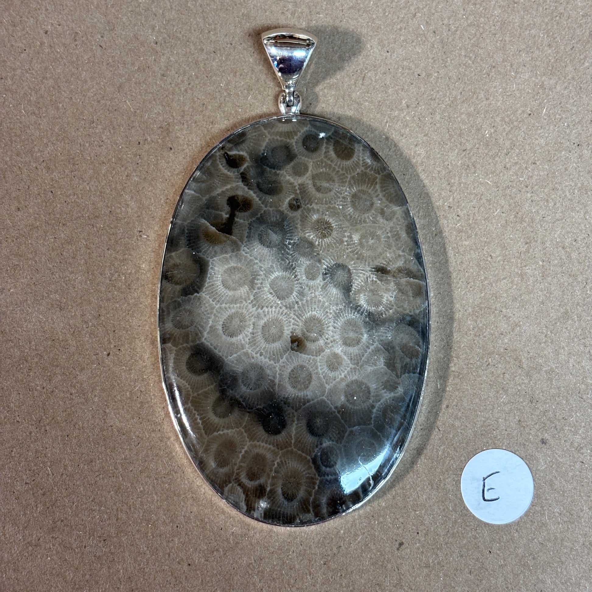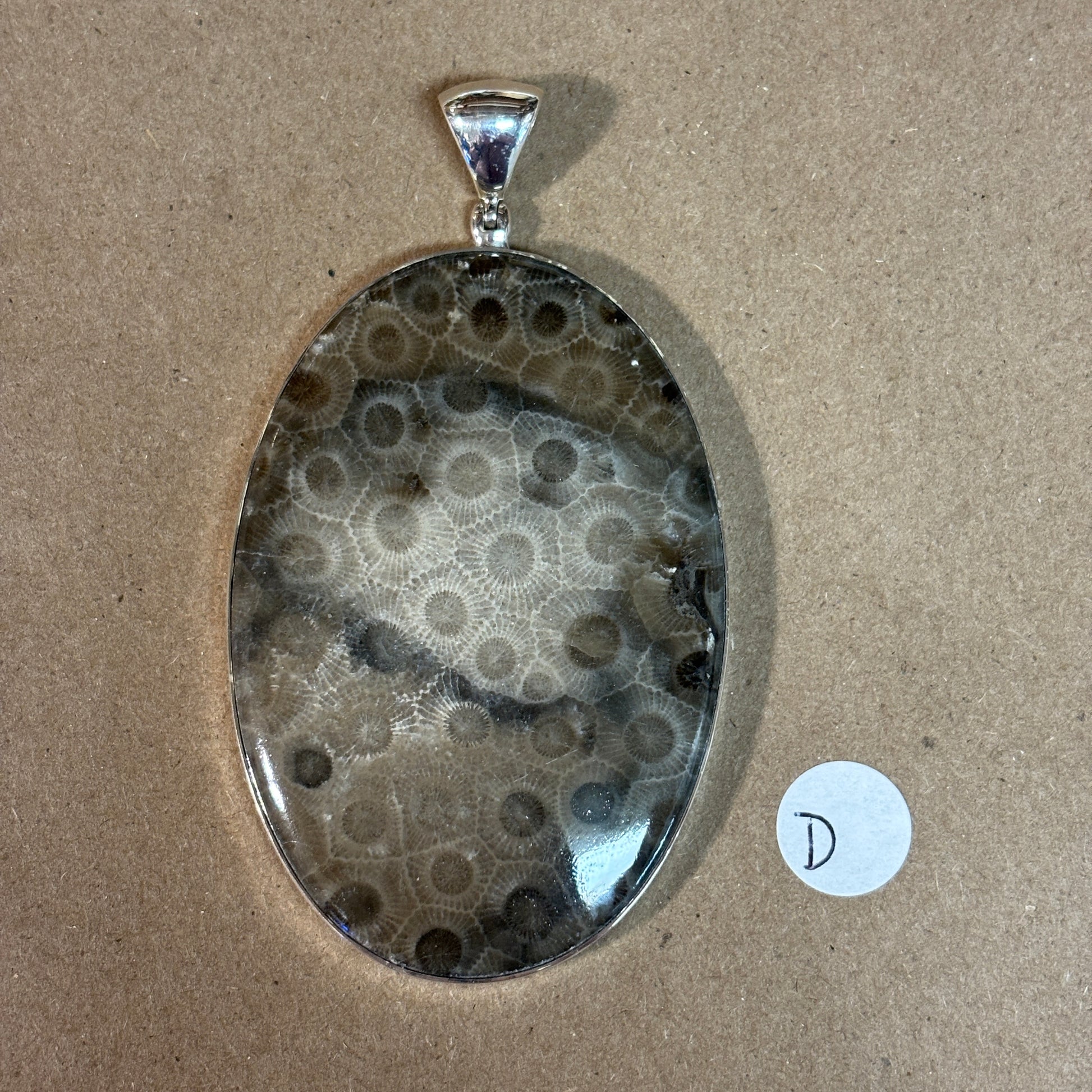 Petoskey Stone Necklace Pendant Encased in Sterling Silver Oval Shape